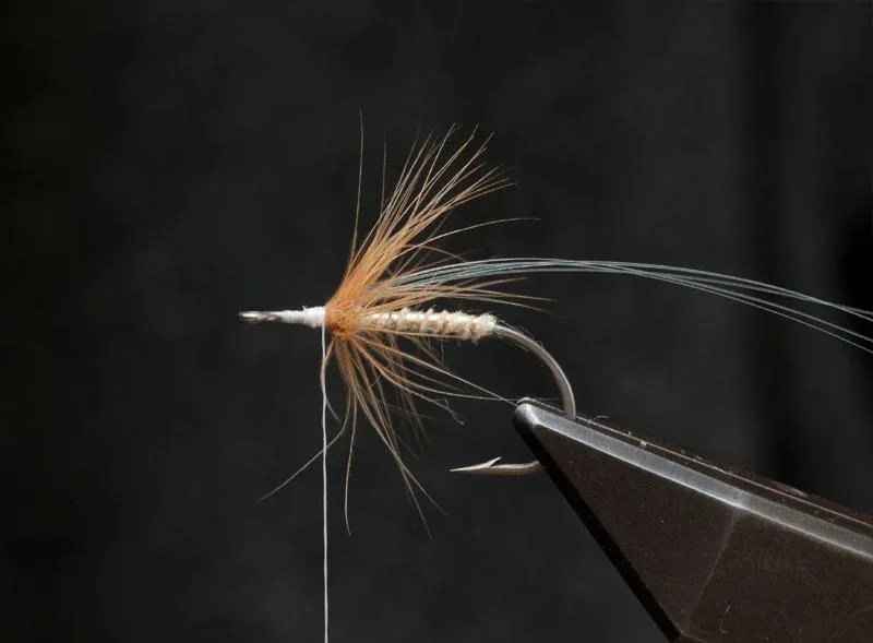 With the hackle and rib under control, the fly is ready for the final dubbing