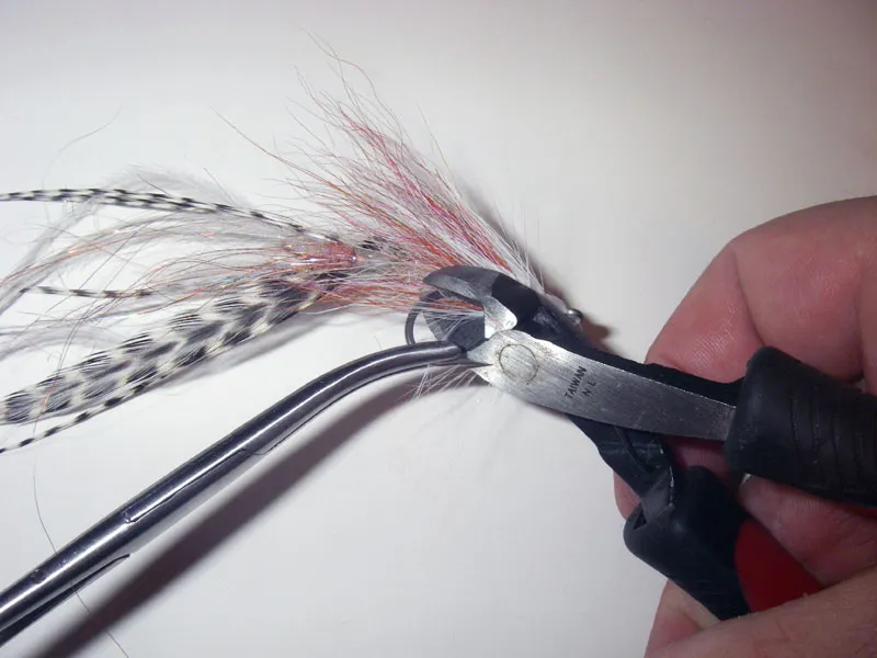 Once dry use a wire cutter to snip off the front hook right below where the dubbed Fireline attaches to the shank.