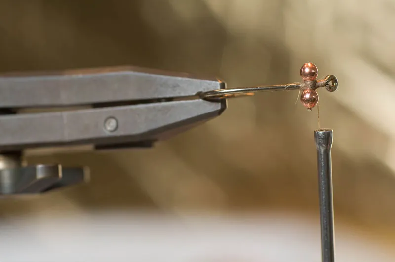Criss-crossing the thread and winding it parallel to the hook shank will set the eyes firmly with no need for glue.
