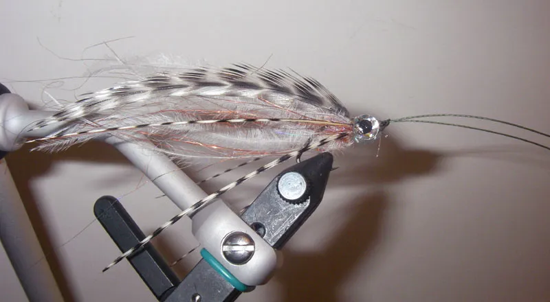Whip finish and trim. Add the eyes. Secure the Fireline to the hook.