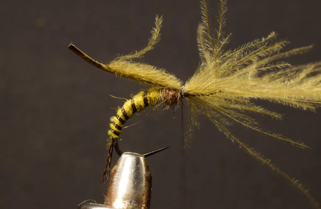 Catche the CDC feather with a couple of loose wraps, tip forward, stem to the rear.